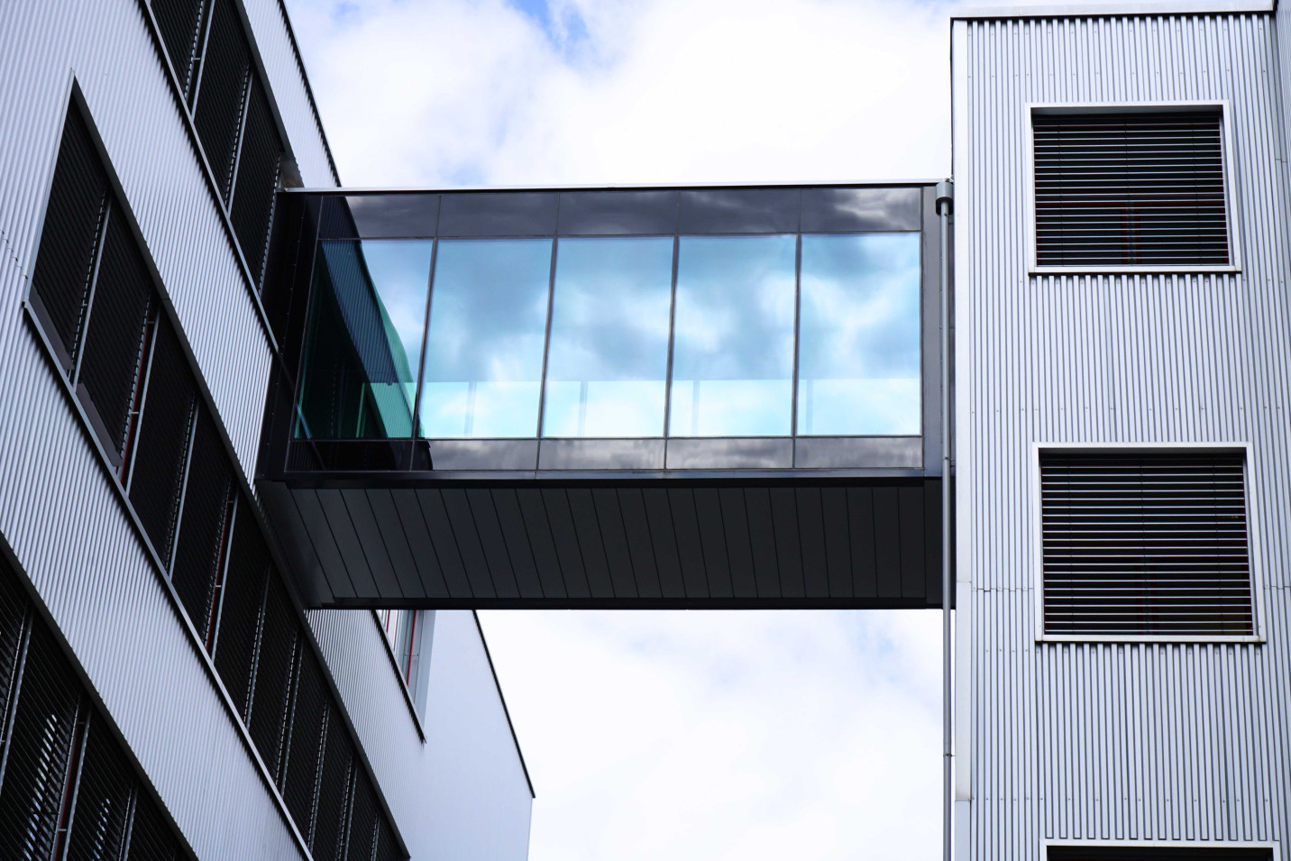 Für dieses Projekt waren Stahl- wie Metallbau gleichermassen involviert: Die Tragstruktur der Passerelle wurde im Stahlbau gefertigt, während die Pfosten-Riegel-Fassade ohne Glasleisten von der Metallbauabteilung realisiert wurde. Die Umsetzung innerhalb desselben Unternehmens ermöglichte eine reibungslose Koordination und eine effiziente Schnittstellenlösung.