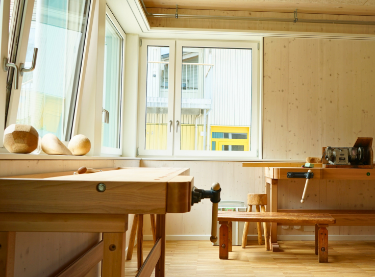 Herausforderungen stellten die eher beengten Platzverhältnisse auf den Baustellen sowie die spezielle sechseckige Dachform des Begegnungszentrums dar. Durch den Einsatz disponierter Anlieferungen konnte trotz des begrenzten Raumangebots ein effizienter Bauablauf gewährleistet werden. Zusätzlich ermöglichte die frühzeitige 3D-Planung eine präzise Vorfertigung der Bauteile, insbesondere der komplexen Dachkonstruktion, und trug entscheidend zu einer reibungslosen Montage bei.