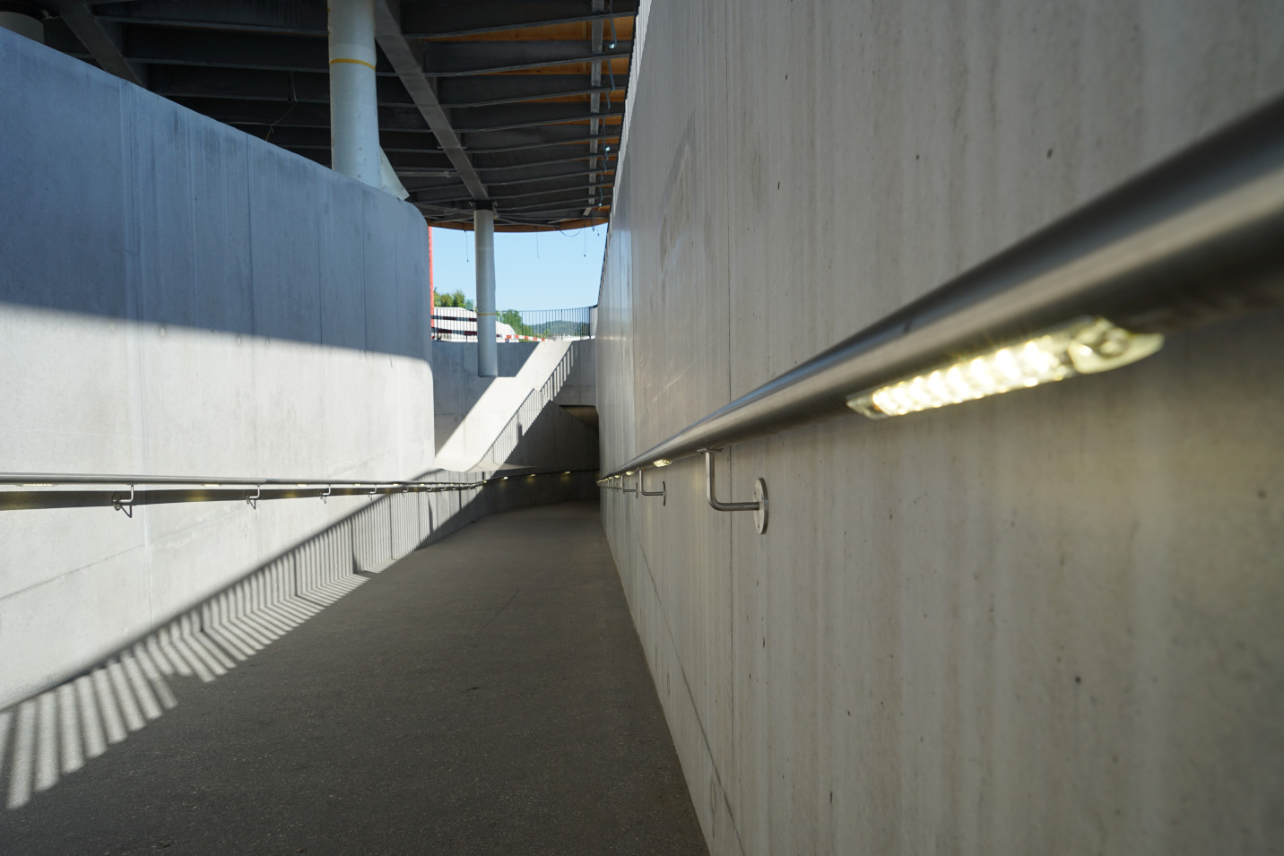 Im Bereich der ergänzenden Infrastruktur wird zudem noch das neue P+R-Gebäude mit einer besonderen Lamellenfassade ausgestattet. Diese Lamellen werden dabei sowohl mit als auch ohne schalldämmende Elemente gefertigt und montiert.