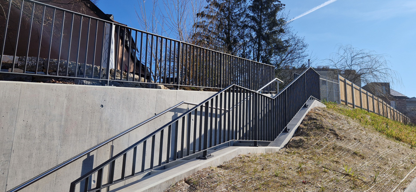 Ein wesentlicher Bestandteil unseres Leistungsumfangs umfasst die Fertigung und Montage von mehreren hundert Laufmetern Staketengeländer sowie CNS-Handläufen, die mit integrierten LED-Leuchten ausgestattet wurden. Diese besondere Ausführung stellt hohe Anforderungen an die technische Planung, Präzision und Qualität der Verarbeitung.