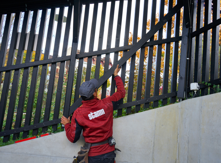 Unsere Lernenden aus der Sparte Holzbau produzierten und installierten einen verschiebbaren Raumtrenner aus Lärchen-Holz als Abgrenzung auf der Terrasse.